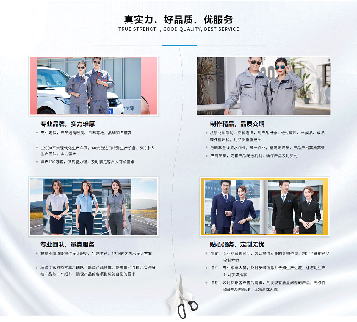 ◆ 融入我們的生產(chǎn)和設(shè)計(jì)中,為客戶(hù)提供完美的工作裝產(chǎn)品!
